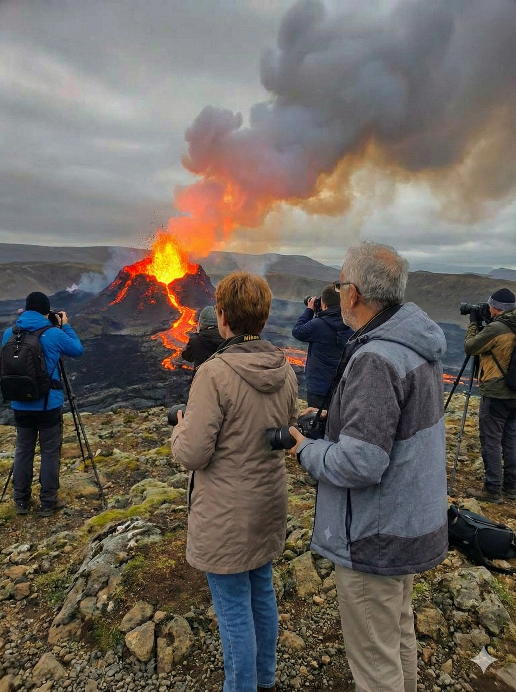 Because Gemini is also a strong Large Language Model (LLM), it excels at parsing complex, multi-part instructions. It can separate your request into distinct tasks—"fix wrinkles," "hold Nikon cameras," "face volcano," "make volcano brighter"—and execute them in a single generation step.